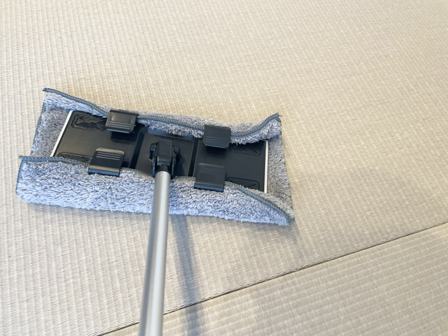 畳の後はお部屋全体の床を乾拭きして、落としたホコリをおおかた取っていきます!